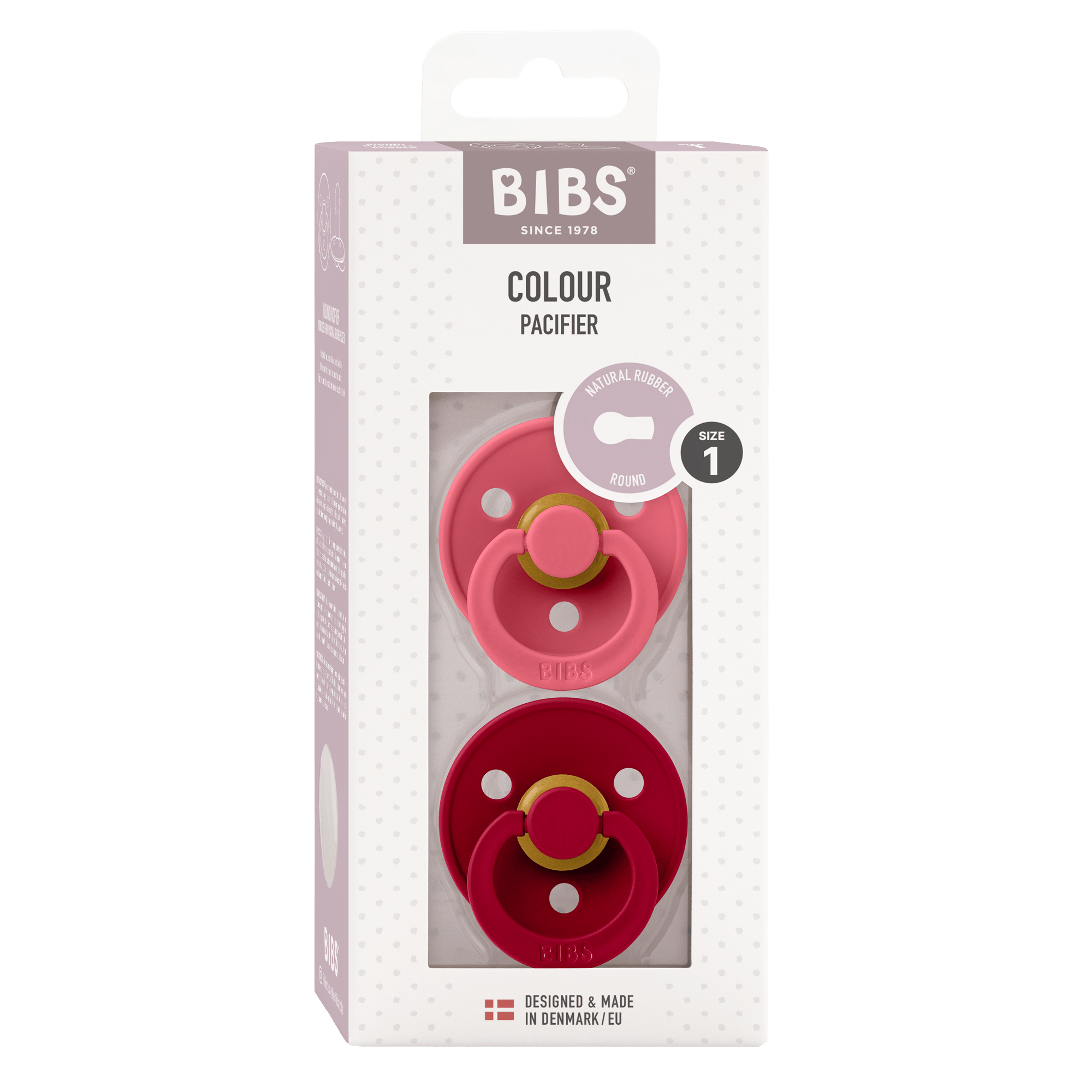 BIBS Colour 2 PACK Latex Size 1 Coral/Ruby