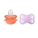 Supreme 2 Pack Silicone Maat 1 Papaya/Violet Sky is een fopspeen van het populaire merk BIBS.