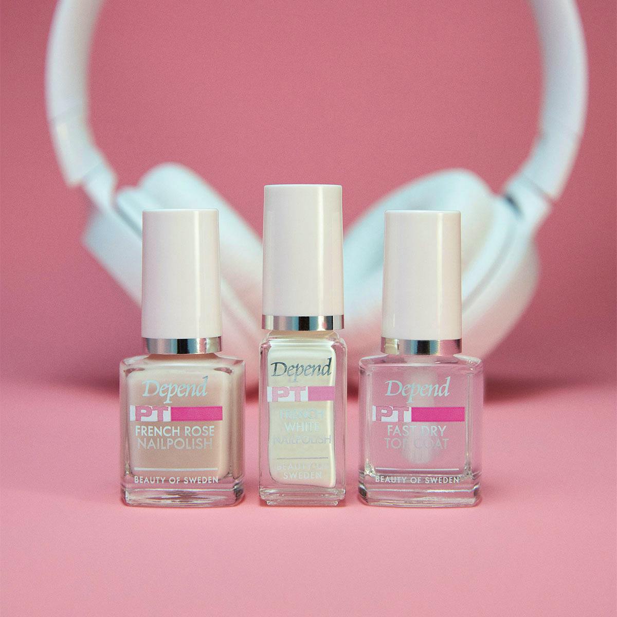 De French Manicure Set van Depend is een veelzijdige nagellakset die je helpt om de tijdloze elegantie van een klassieke Franse manicure te bereiken.