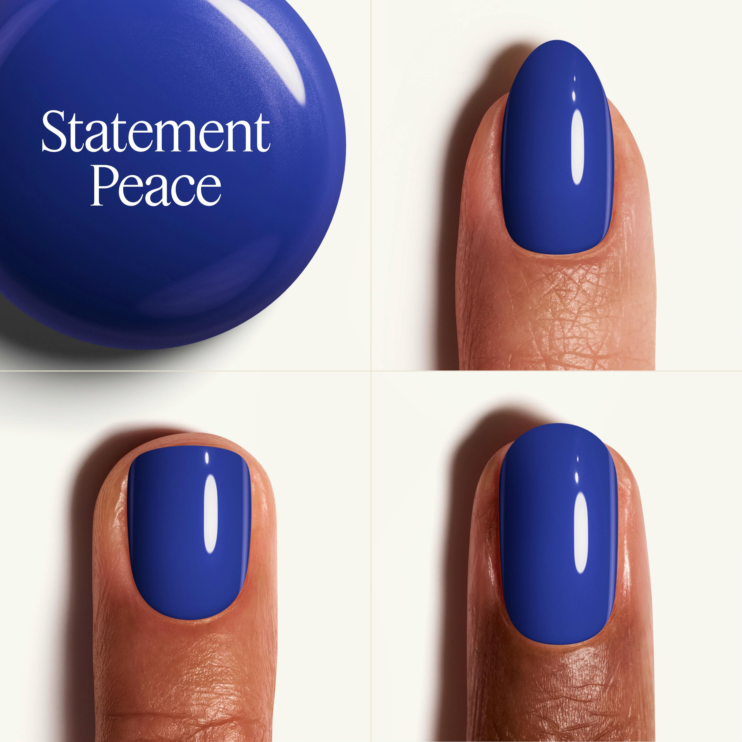 Essie Gel Couture 552 Statement Peace is een levendige saffierblauwe nagellak met rode ondertonen, ontworpen om een uitzonderlijk langdurige en glanzende afwerking te bieden.