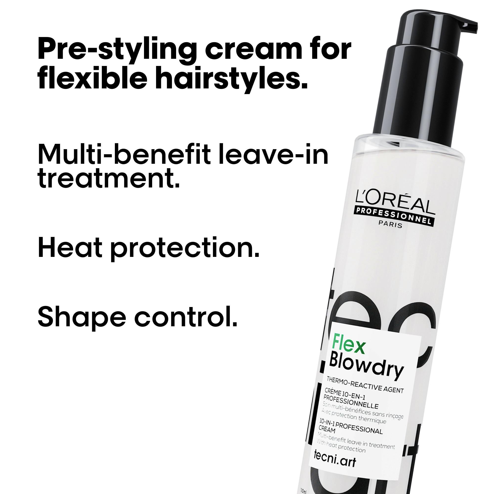 Tecni.Art Flex Blowdry Cream van L'Oréal Professionnel is een veelzijdige pre-styling föhncrème die je haarverzorgingsroutine naar een hoger niveau tilt dankzij zijn indrukwekkende 10-in-1 voordelen.