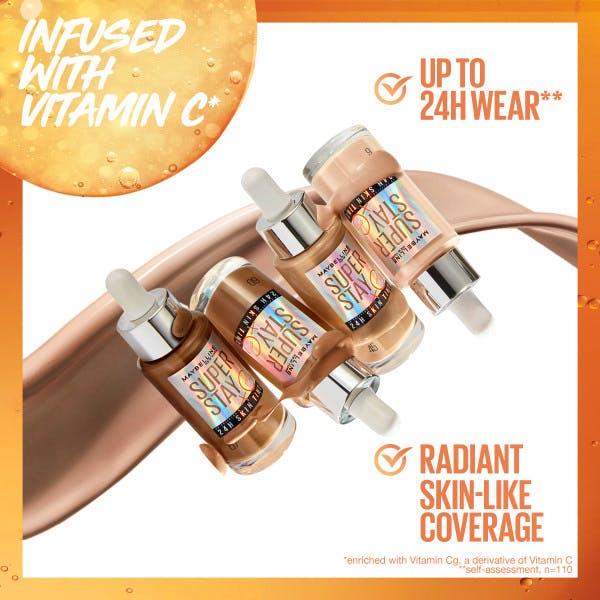 Superstay 24H Skin Tint Foundation 45 van Maybelline is een geweldige foundation die je make-uproutine zal revolutioneren. Deze foundation is niet zomaar een gewone dekkende crème, het is ook verzorgend en laat je huid comfortabel aanvoelen. Met zijn lichte dekkende formule, verrijkt met vitamine Cg, krijgt je huid een frisse gloed terwijl het oneffenheden en roodheid bedekt. Het beste aan deze foundation is de langdurige houdbaarheid. Het blijft tot wel 24 uur zitten*, dus je kunt er zeker van zijn dat je make-up er de hele dag foutloos uitziet. En ondanks de langdurige houdbaarheid voelt het nog steeds comfortabel op de huid en geeft het een zachte en gehydrateerde sensatie. Een andere geweldige eigenschap van Superstay 24H Skin Tint is dat het je poriën niet verstopt. Dit betekent dat je huid vrij kan ademen en je verstoppingen en onzuiverheden vermijdt. En als je je zorgen maakt over ingrediënten van dierlijke oorsprong, hoef je dat niet te doen. Deze foundation is veganistisch** en geschikt voor de gevoelige huid. Om deze foundation te gebruiken, hoef je alleen maar de hoeveelheid aan te passen aan de gewenste dekking en het uit te smeren op de huid. Je kunt gemakkelijk de perfecte afwerking bereiken die past bij jouw stijl en behoeften. Met Superstay 24H Skin Tint Foundation 45 van Maybelline krijg je niet alleen een foundation, je krijgt een echte gamechanger. Het bedekt, verzorgt en geeft een comfortabel gevoel op de huid, zodat je je zelfverzekerd en stralend kunt voelen de hele dag.