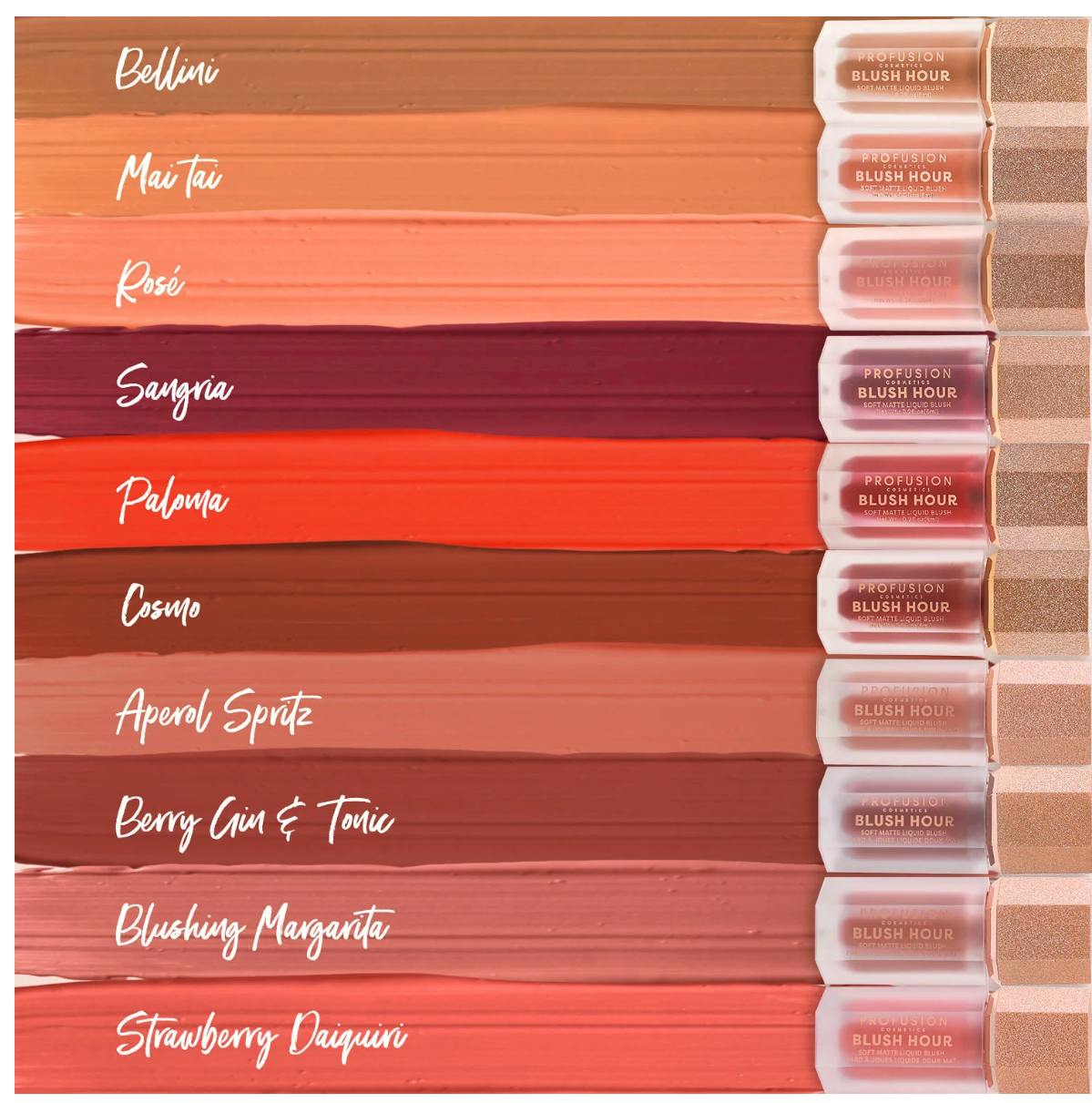 Blush Hour Liquid Cream Blush in Aperol Spritz van Profusion is een vloeibare blush met een hoge pigmentatie die je wangen voorziet van een frisse en luxueuze kleur.