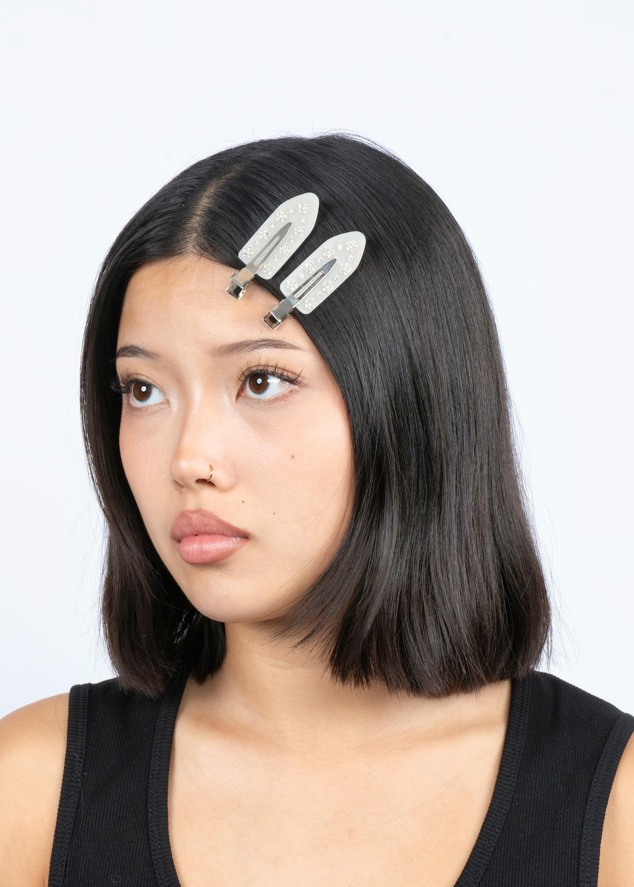 No Crease Flower Crystal Clips White