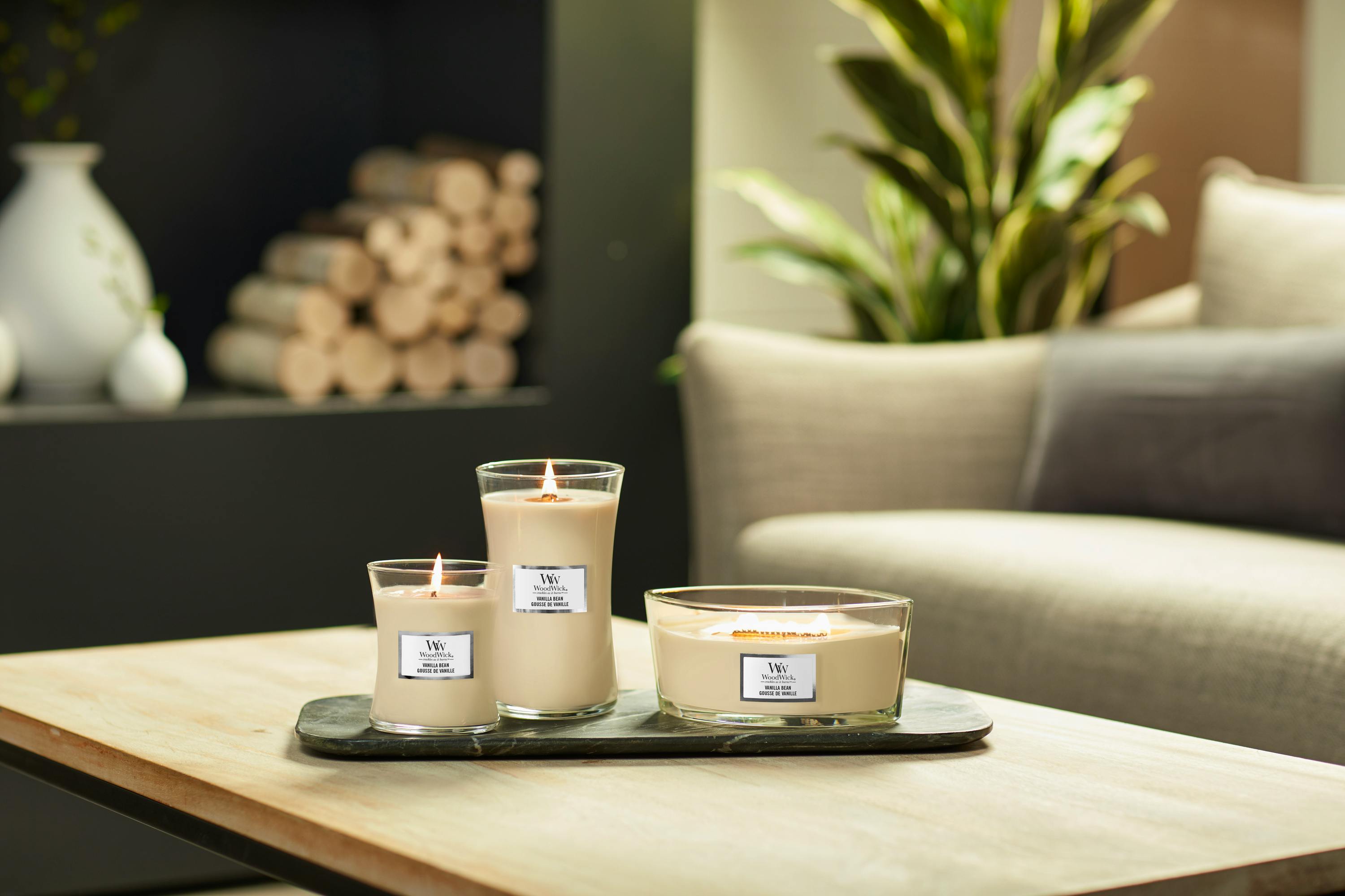 Laat je omhullen door de romige en uitnodigende geur van vanille, die je huis vult met een sfeer van rust en comfort.